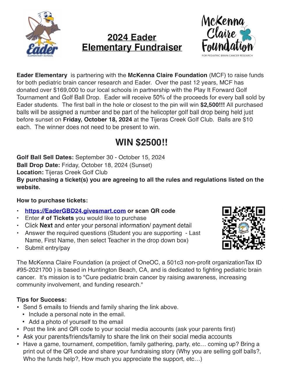 Please note the flyer below for information pertaining to the McKenna Claire Foundation fundraiser.