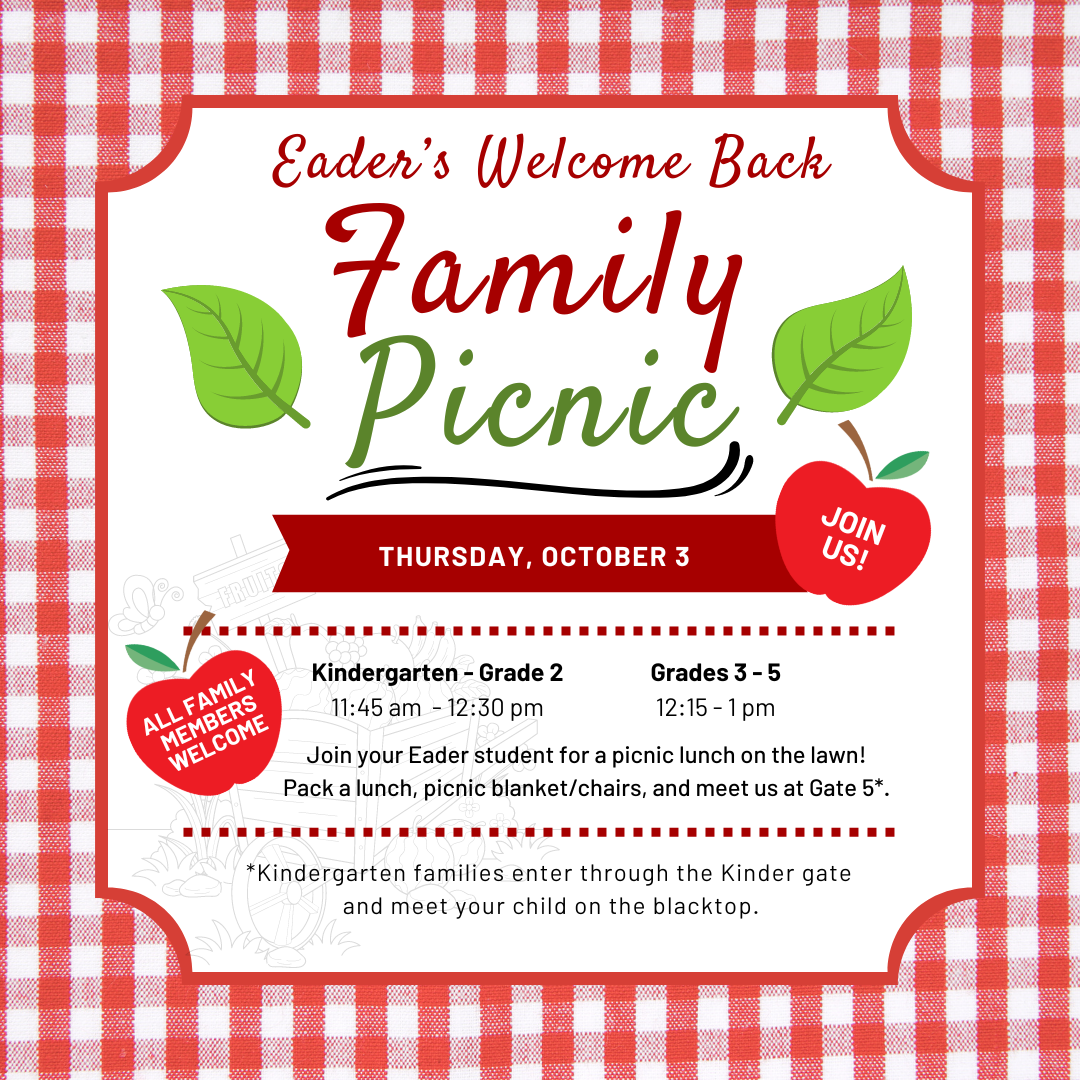 Please see the information below regarding our Family Picnic on the Eader School Field.