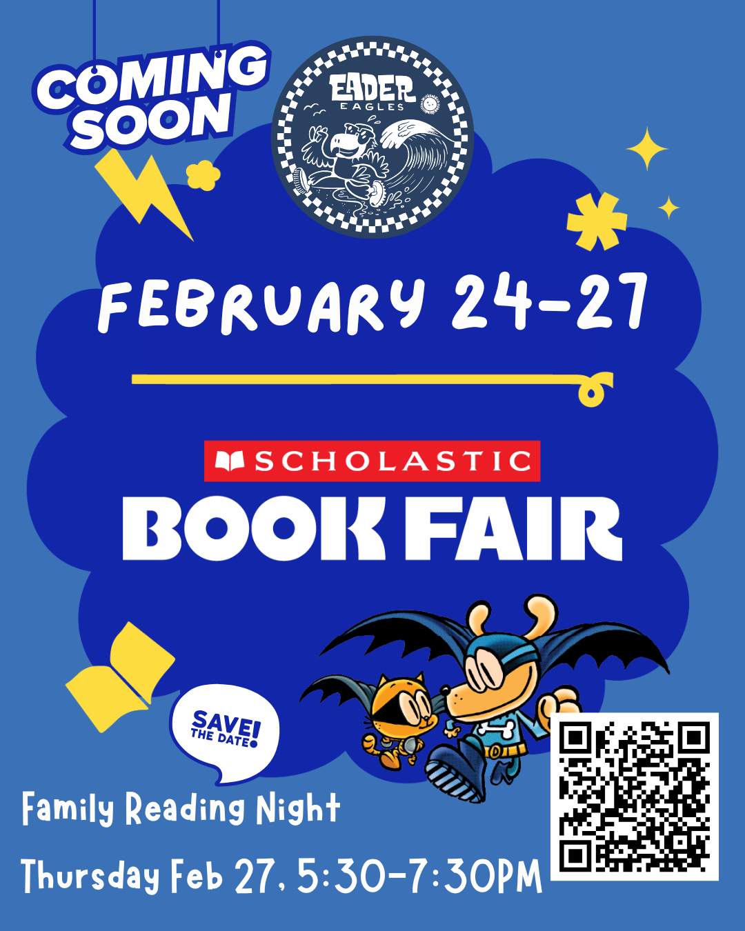Eader Book Fair – February 24-27Get ready, Eader readers—the Book Fair is coming February 24-27! This is a great opportunity for students to explore new books and build their home libraries. To make shopping easy, you can set up an e-wallet for your child—just click the link or scan the QR code for more details.