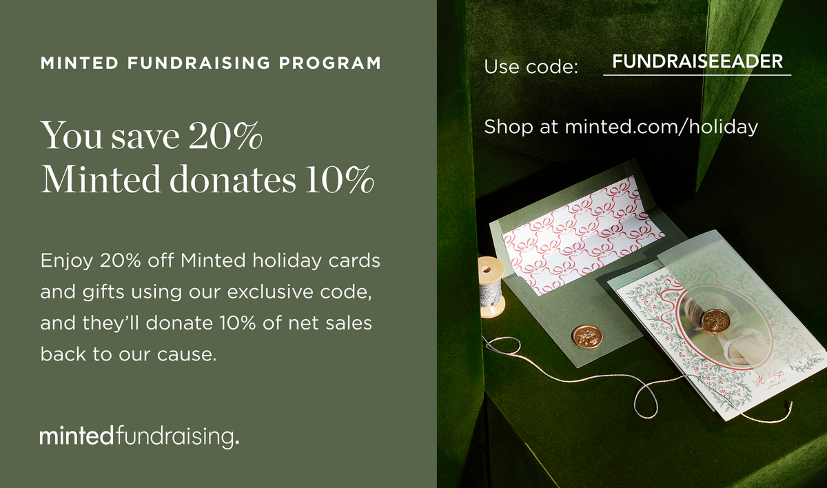 Use the code FUNDRAISEEADER at checkout on Minted.com to receive 20% off your order. Minted will then donate 10% back to Eader PTA - a simple way to save while supporting our school!
