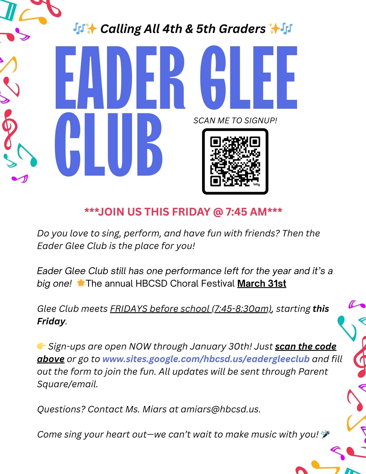 Glee Club Registration - Deadline: Friday, January 30