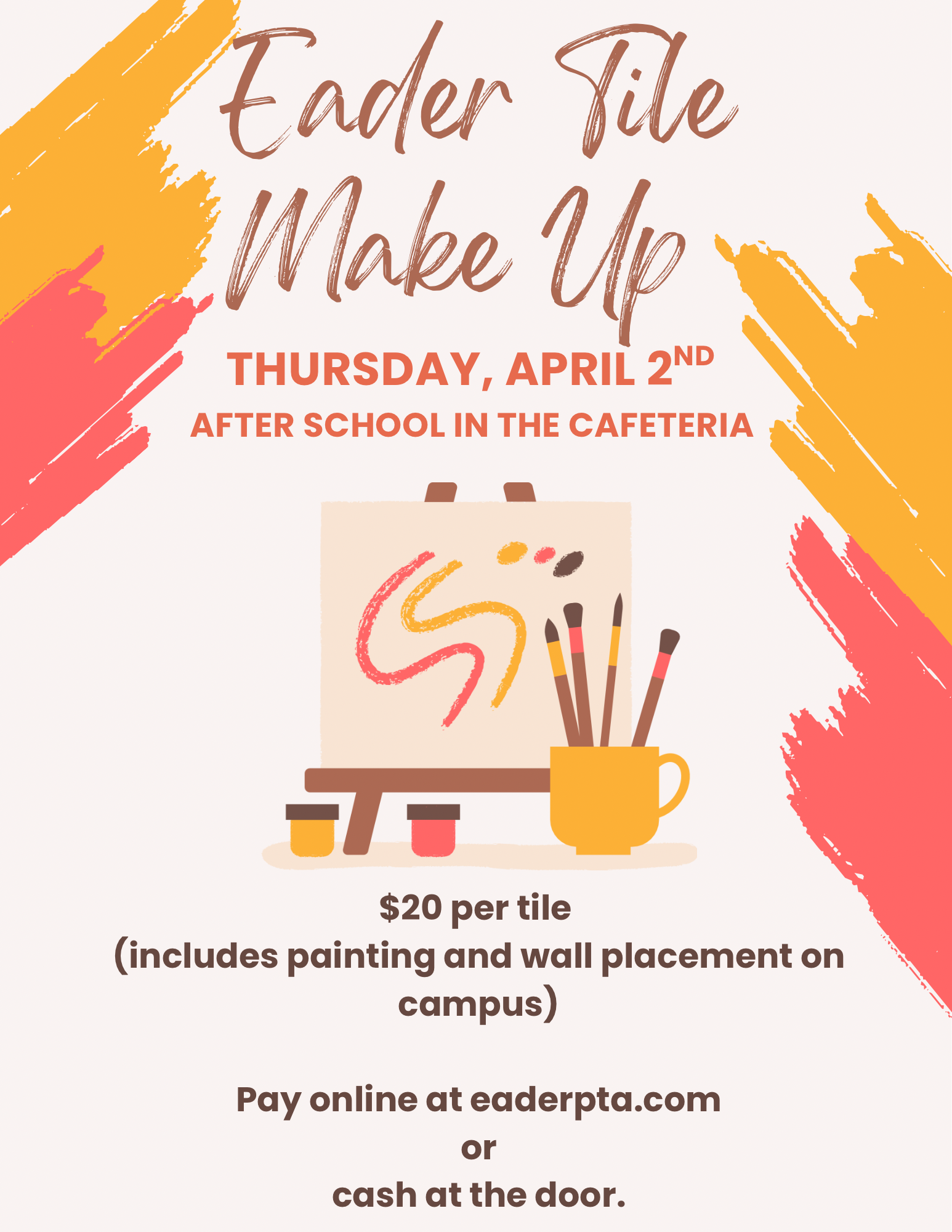 Missed our tile painting event? We’ve got you covered! Join us for a make-up tile painting session on Thursday, April 2. This is a great opportunity for students to be part of this fun school tradition.